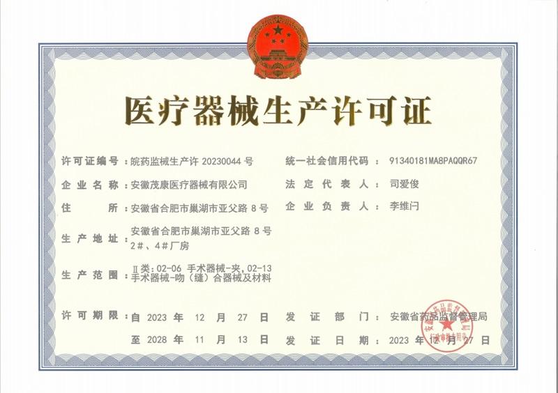 喜報(bào)!熱烈祝賀茂康醫(yī)療器械取得《生產(chǎn)許可證》